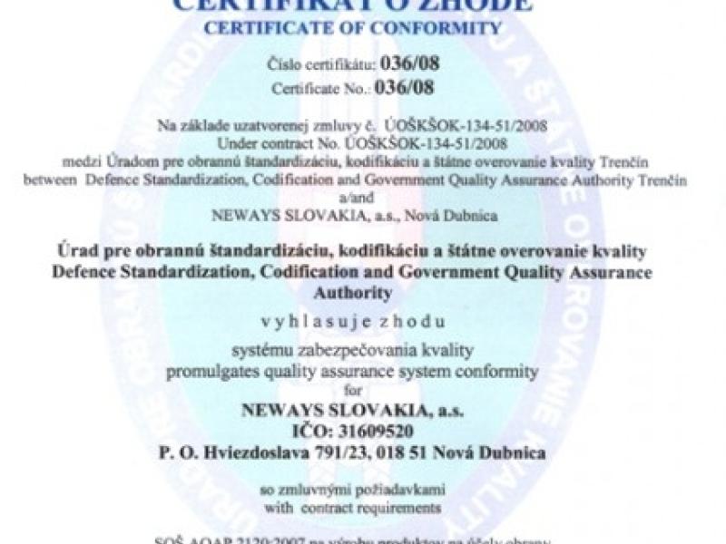 Dňa 10. marca 2009 slávnostne odovzdal VOP 016, š.p. Moldava nad Bodvou certifikát o zhode systému zabezpečovania kvality podľa SOŠ…